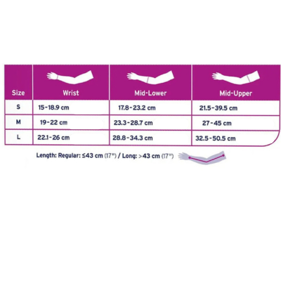 Aby prawidłowo założyć rękaw JOBST Bella® LITE, należy delikatnie nałożyć go na rękę, dbając o odpowiednią pozycję szerokiego pasma oraz równomierne rozłożenie rękawa od nadgarstka do ramienia. Ważne jest, by unikać marszczeń i fałd, co zapewnia optymalny komfort.