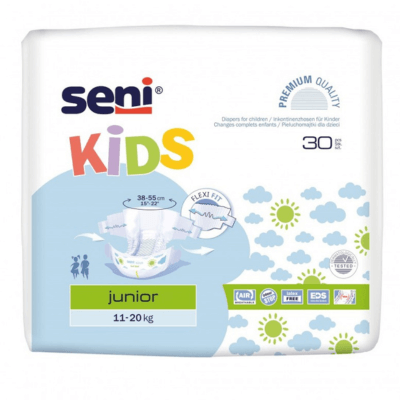 Seni Kids Junior Super to innowacyjne pieluchomajtki zapinane na rzepy, stworzone z myślą o dzieciach z inkontynencją, które przeszły już z tradycyjnych pieluszek, ale nadal potrzebują wsparcia. Te oddychające produkty zapewniają komfort i swobodę ruchu, co jest kluczowe dla aktywnych maluchów oraz tych wymagających opieki.