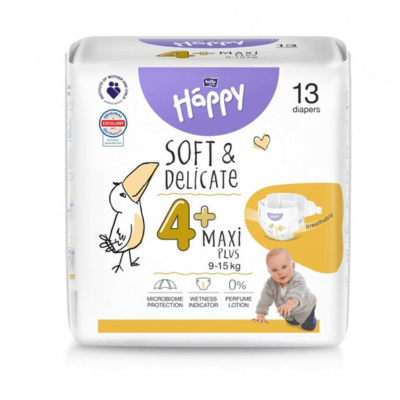 Pieluszki Bella Baby Happy Soft & Delicate 4+ (Maxi Plus) to niezastąpiony wybór dla niemowląt o wadze od 9 do 15 kg, które potrzebują pieluchy o odpowiednich właściwościach ochronnych i komfortowych. Wykonane z najwyższej jakości materiałów, pieluszki te doskonale dopasowują się do ciała dziecka, gwarantując wygodę oraz uczucie suchości przez cały dzień. Zaprojektowane z myślą o delikatnej skórze, nie zawierają alergenów ani substancji, które mogłyby wywołać podrażnienia, minimalizując ryzyko odparzeń pieluszkowych.